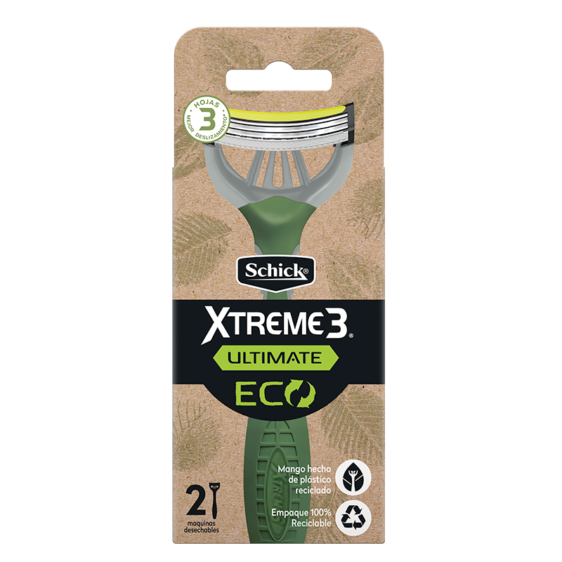 Además, Schick tiene una amplia línea de productos de afeitado a la carta, con un rastrillo para cada necesidad. Si lo que buscas es un afeitado inteligente y además ecofriendly, Schick Xtreme 3 Ultimate Eco es la mejor opción, pues cuenta con un mango y empaque reciclado y 100% reciclable. Además, sus 3 hojas son flexibles para un óptimo confort.