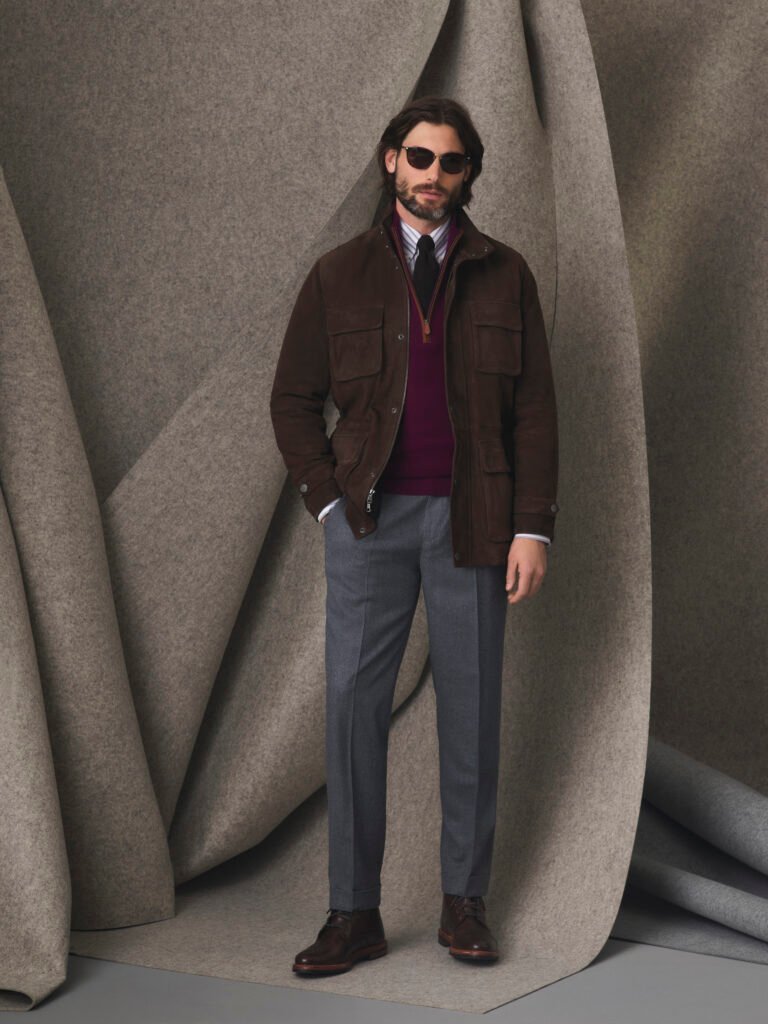 Explorar esta nueva línea Otoño/Invierno es como acceder a un museo portátil de autoexpresión, cuyos trazos del pasado dialogan con los pliegues del futuro gracias a tejidos innovadores que se encuentran en constante evolución, incluyendo la reconocida tecnología Non-Iron® de sus camisas que evita las arrugas en el tejido.