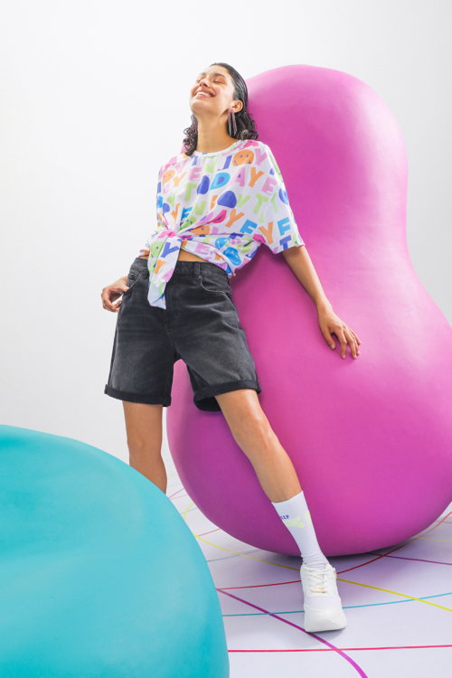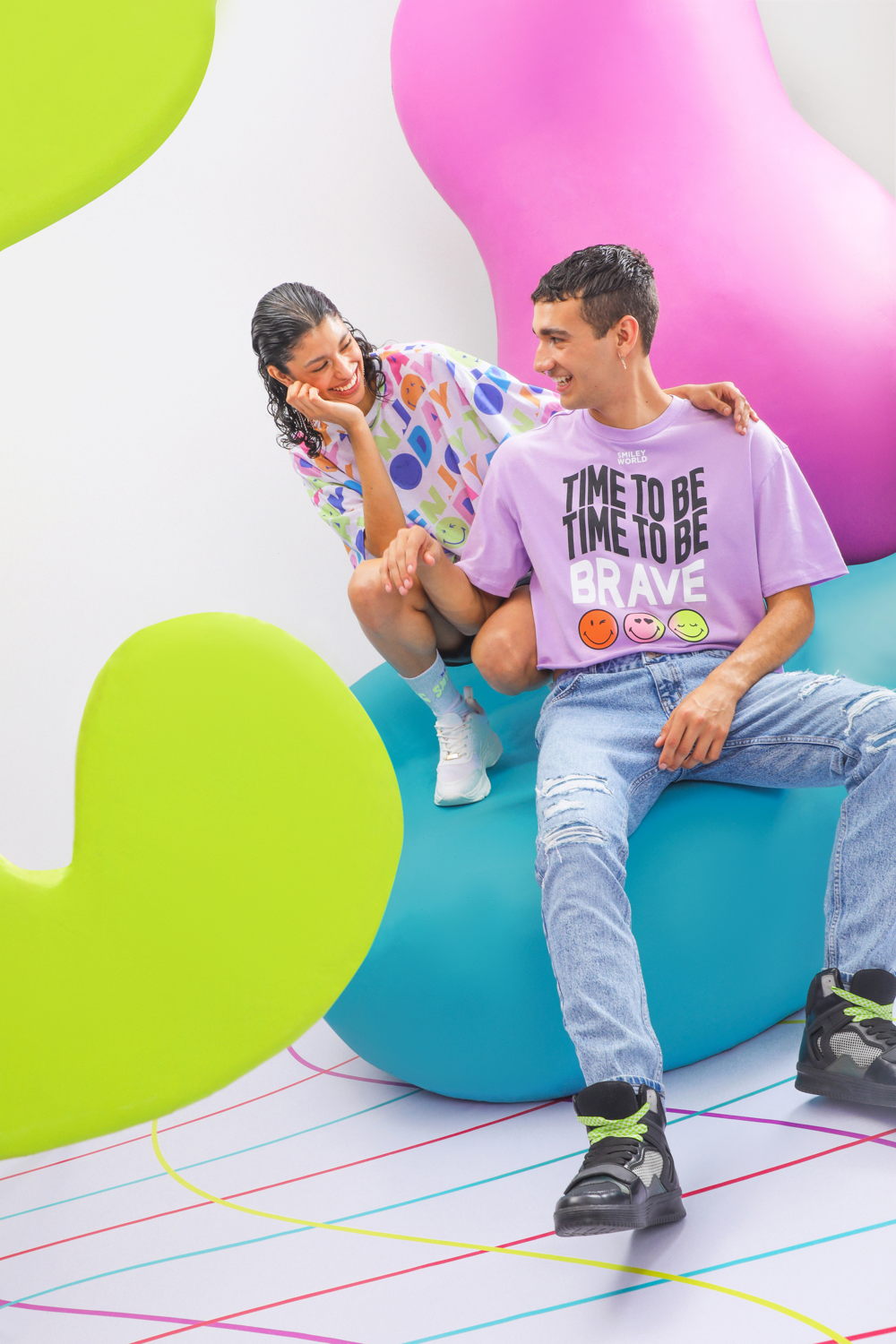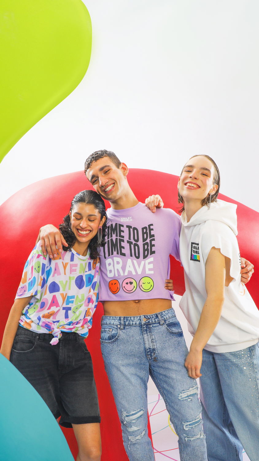 En esta ocasión quisimos ponernos nuestra mejor sonrisa para llenar de color y amor nuestras prendas, y en colaboración con Smiley World creamos una increíble colección que ya puedes encontrar en todas nuestras tiendas. En ella, los colores y las características caritas sonrientes te harán vibrar y lucir tu mejor versión.