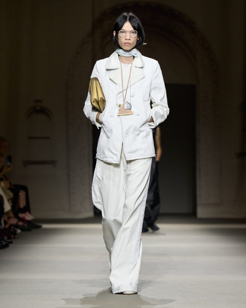 “Para la primavera pensé en un delicado equilibrio entre el brillo y la elegancia con la crudeza, una combinación que considero muy neoyorquina. Y con crudeza me refiero a la resiliencia, a la belleza de cómo la ciudad cobra vida cada mañana”, comenta Vevers. “El glamour del acero y el vidrio se vuelve más hermoso con la luz intensa del sol, la pátina del tiempo y el desgaste natural de la vida en nuestra ciudad compartida”.