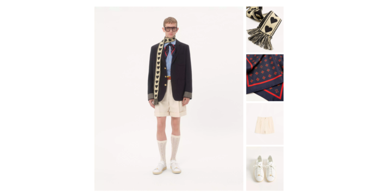 Esta temporada, los accesorios dejan de ser complementos discretos para convertirse en protagonistas absolutos. Este primer look de Valentino lo ejemplifica con claridad: pañuelo anudado al cuello y una bufanda gráfica superpuesta conviven en una misma silueta sin competir entre sí. La clave está en la jerarquía visual y en la mezcla de texturas: tejido, seda y piel dialogan en equilibrio. La idea es usar múltiples accesorios al mismo tiempo, reinterpretarlos y desplazarlos de su función tradicional.