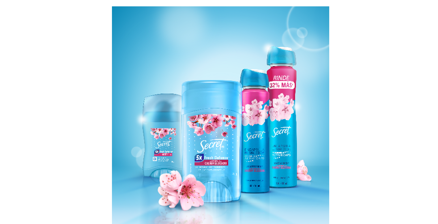 🌸 Por ejemplo, la nueva latota de Secret Spray Cherry Blossom rinde 32% más* que las versiones regulares. ¿El resultado? Tu desodorante dura más días y tu bolsillo respira tranquilo. *vs. Secret Spray 93g/ 150ml