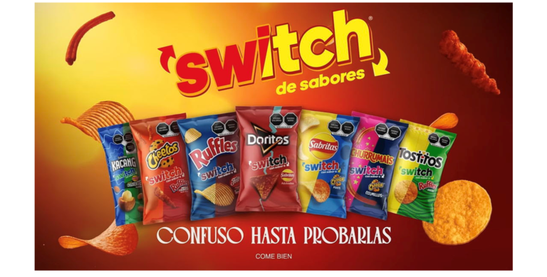 En su tercera entrega, Switch de sabores retoma su esencia disruptiva y la lleva más lejos con una serie de combinaciones que sorprenden y conquistan desde el primer bocado. Esta edición incluye sabores como Doritos® con sabor a Sabritas® Adobadas, Sabritas® con sabor a Cheetos® Poffs, Ruffles® con sabor a Fritos® Chorizo, Churrumais® con sabor a Cheetos® Colmillos®, Tostitos® con sabor a Ruffles® Queso, Cheetos® con sabor a Ruffles® Mega Crunch y Kacang® con sabor a Sabritas® Receta Crujiente® Jalapeño. El empaque dice una cosa, el sabor otra… pero ambos cuentan la misma historia: la del snack que transforma tu momento en algo completamente inesperado.