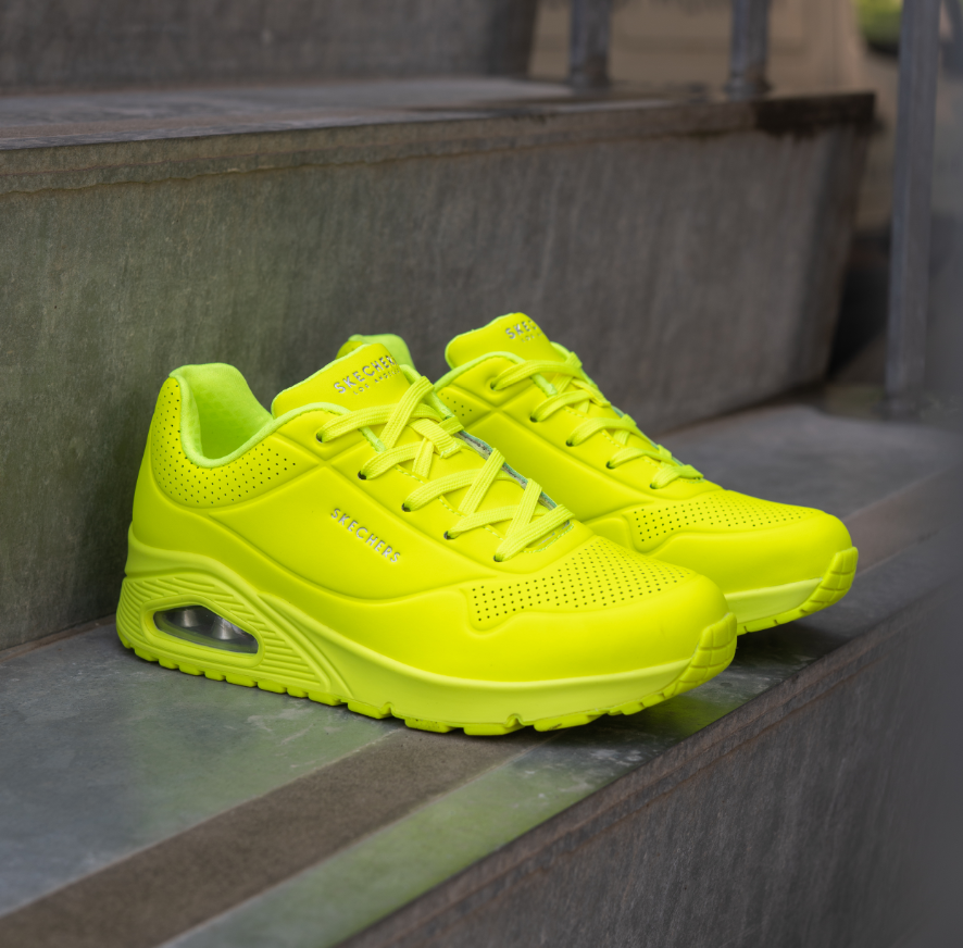 Por eso, este año la nueva colección Skechers Street UNO, se inspiró en los elementos más icónicos de los años 70s, 80s y 90s para crear una línea única en estilos monocromáticos, colores neones y detalles brillantes que te remontará a aquellas épocas sin perder el estilo.