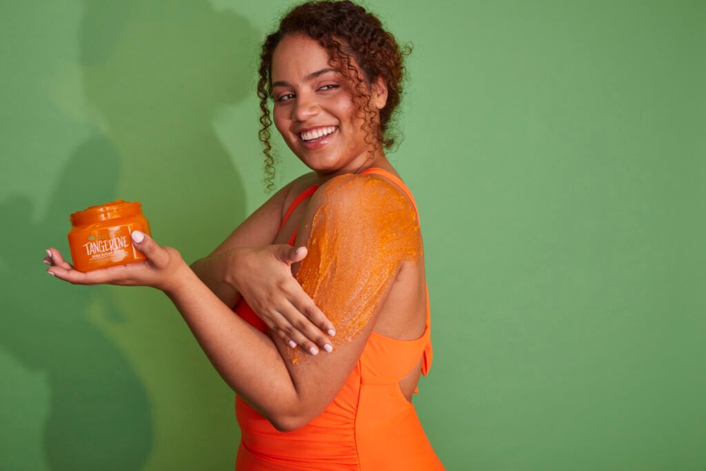 con ácido poliglutámico que retiene la hidratación y deja la piel fresca y jugosa. - Shea Sugar Scrub Tangerine