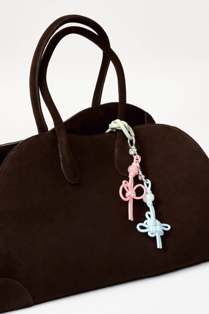 Cuatro charms de cuero recuperado son el corazón de la colección, que fusiona el diseño moderno con los nudos tradicionales, dando la bienvenida a nuevas posibilidades para el año que comienza. Los charms presentan adornos hechos a mano, cada uno un poco diferente del otro, elementos que forman la verdadera esencia de la individualidad. Los mini bolsos de piel o ante complementan los charms, que pueden mezclarse y combinarse según las combinaciones de colores favoritas o los sentimientos individuales.