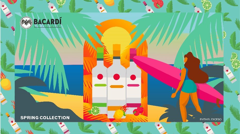 Pensando en un público joven, arriesgado y divertido, la marca resalta por primera vez en una de sus colecciones una paleta de color tan llamativa, haciendo uso de sus botellas de sabores en una versión minimalista y destacando las frutas que dan un sabor único y refrescante a BACARDÍ, haciendo una alusión clara a la primavera.