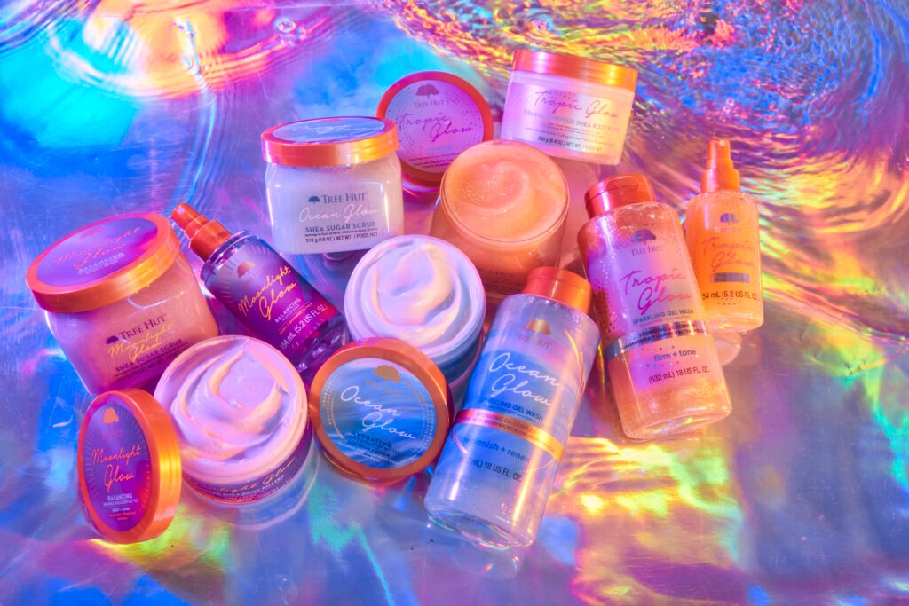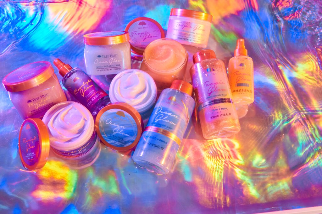 La propuesta Glow de Tree Hut no gira alrededor de partículas luminosas solamente. Es una construcción por capas: renovación, nutrición y acabado satinado.