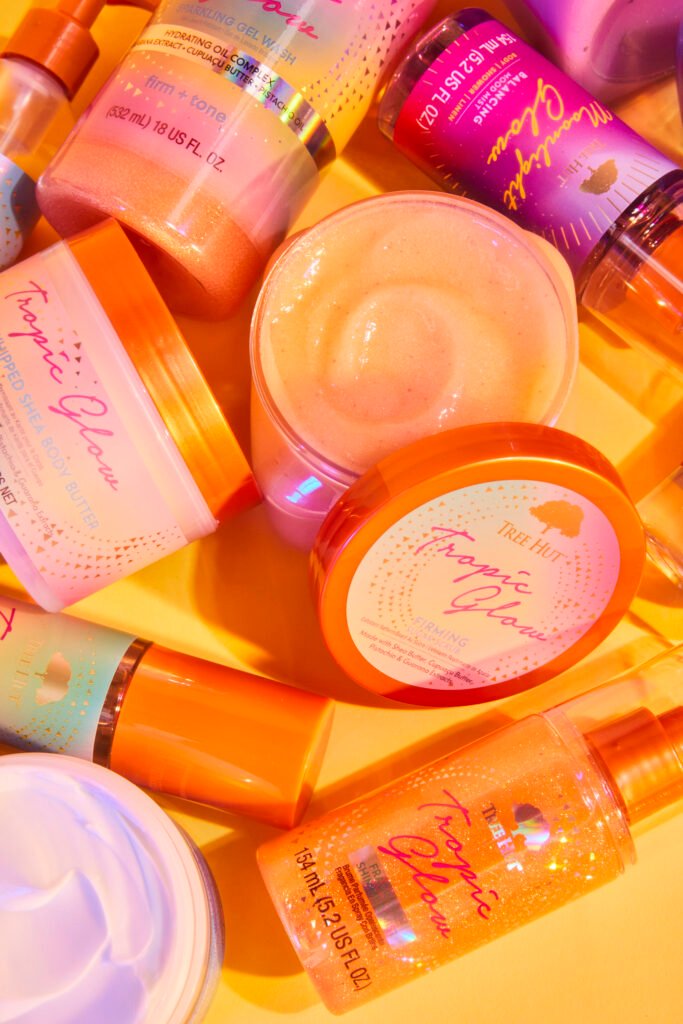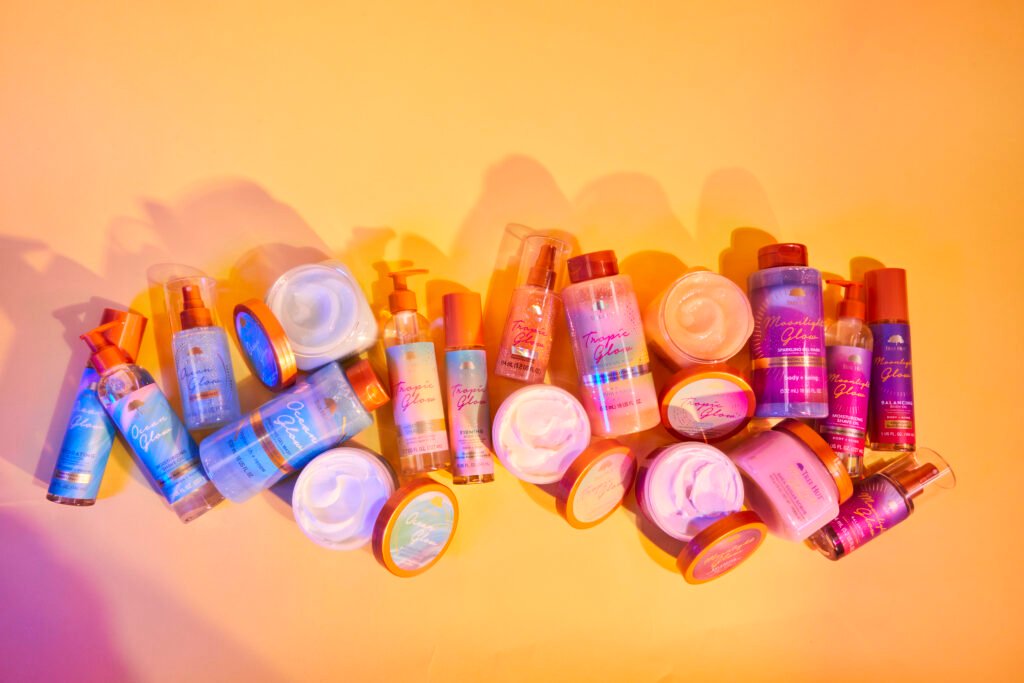 Todo comienza con los exfoliantes como: Tropic Glow Shea Sugar Scrub, Ocean Glow Shea Sugar Scrub, Moonlight Glow Shea Sugar Scrub o Sunlit Glow.
