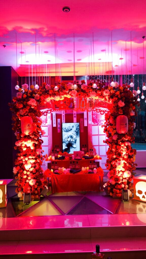 En el Living Room Bar del W Mexico City, los visitantes encontrarán una ofrenda contemporánea que fusiona los elementos icónicos del Día de Muertos —flores de cempasúchil, papel picado y velas— con la sobriedad, el equilibrio y la armonía visual del diseño japonés. El resultado es una instalación inmersiva que invita a detenerse, respirar y celebrar la belleza de lo efímero.
