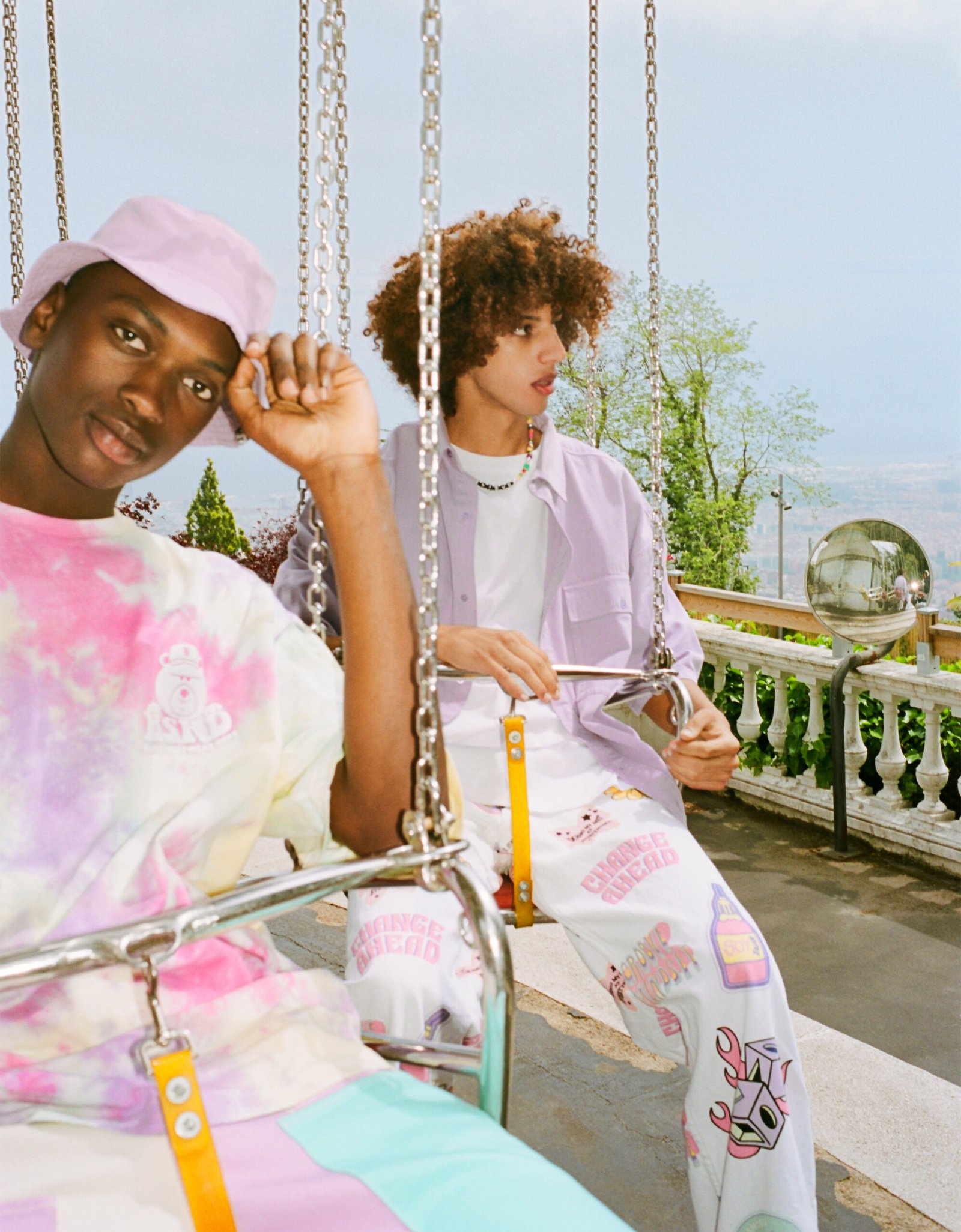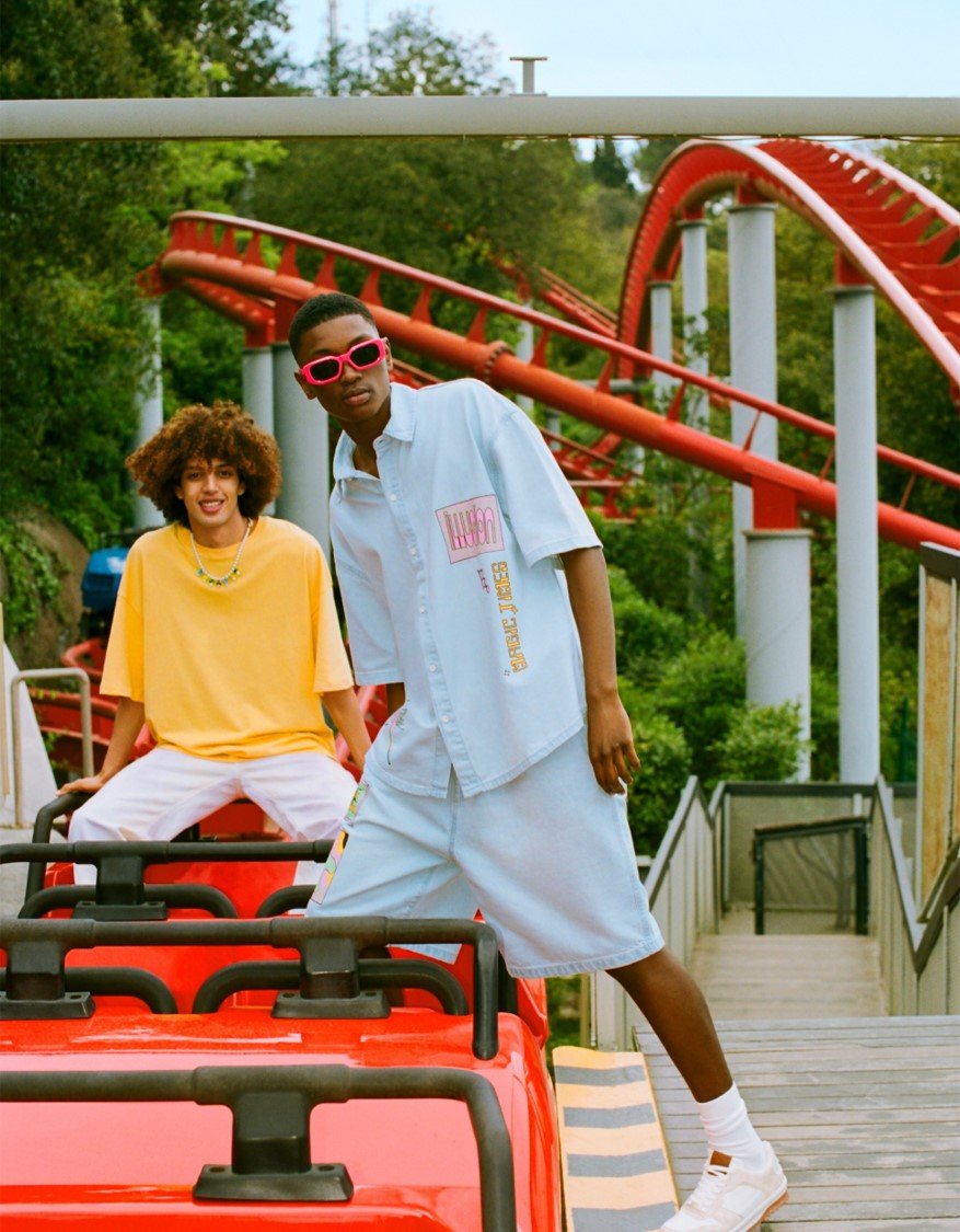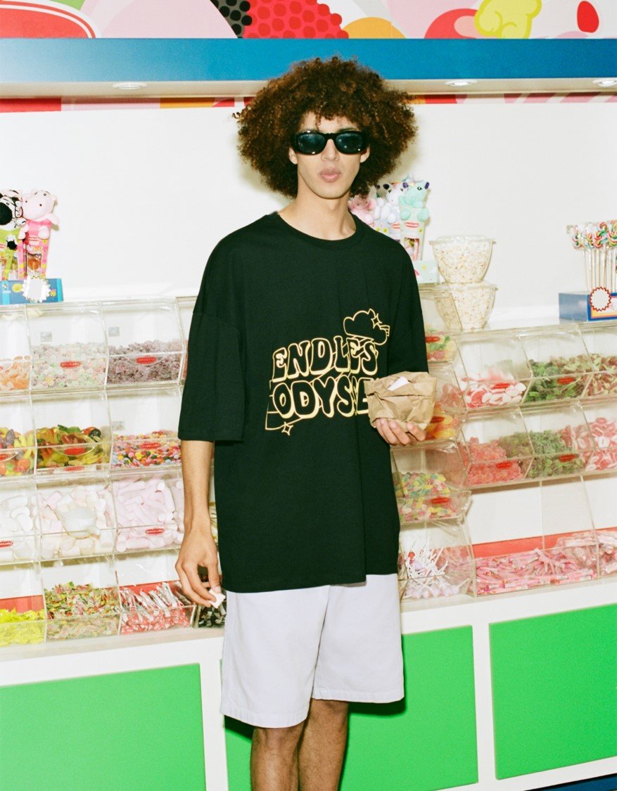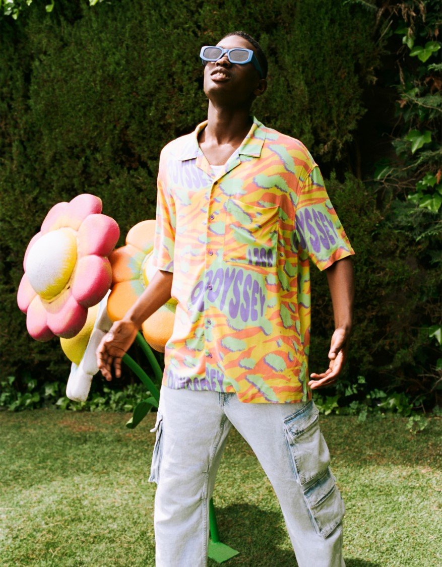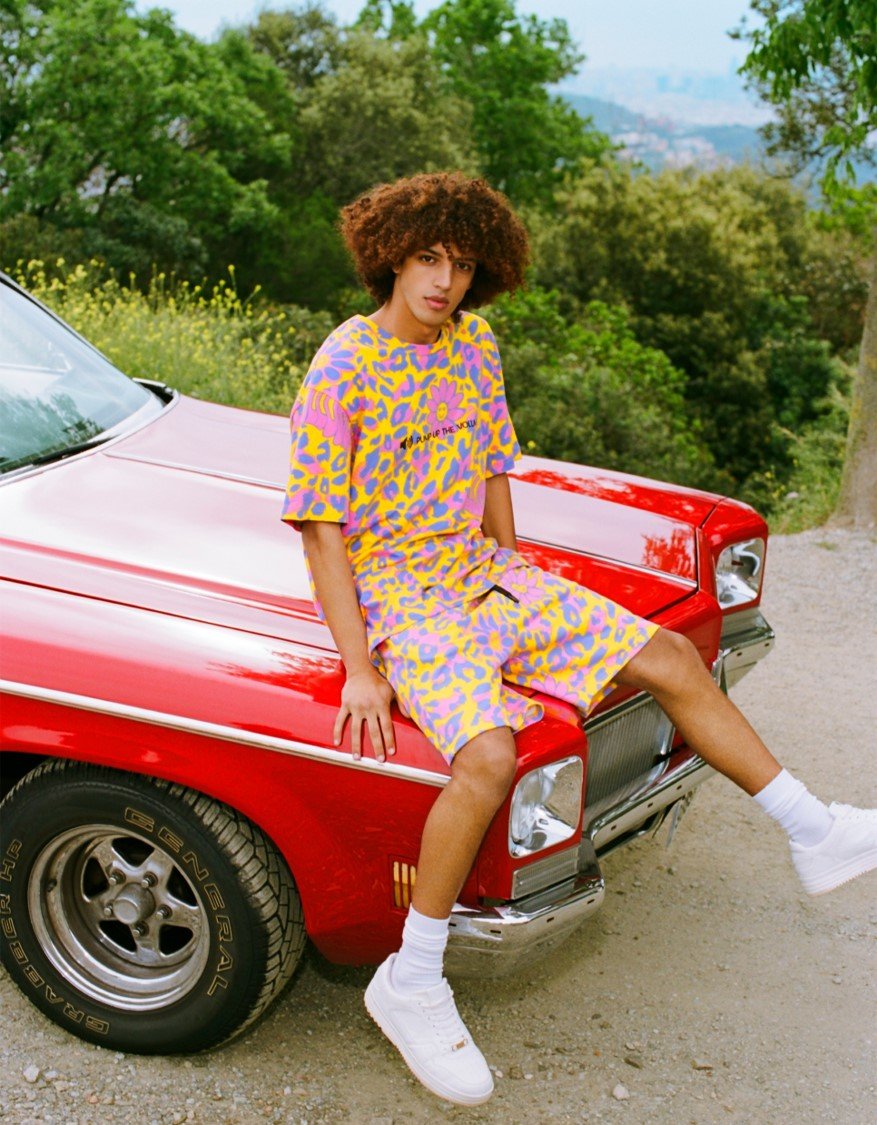 Las prendas de este nuevo drop llegan con fits mucho más relajados y siluetas más sencillas, con un extra push que viene de la mano de potentes estampados all over con motivos psicodélicos llenos de colores pop.