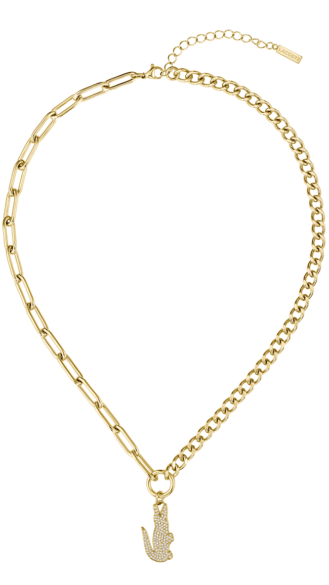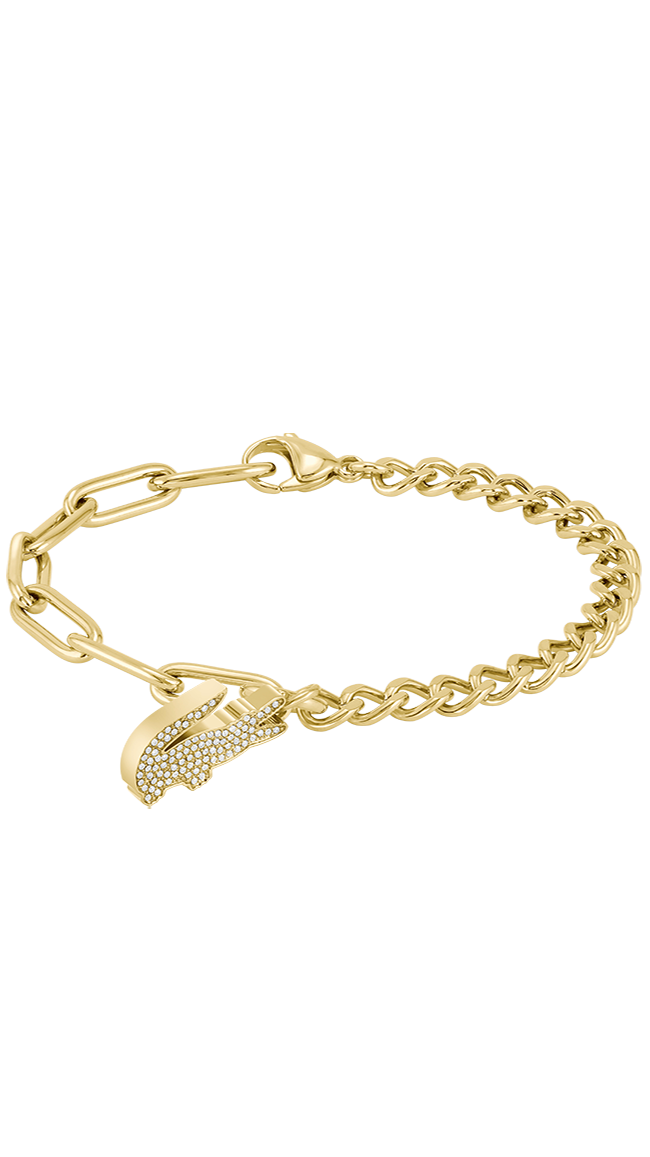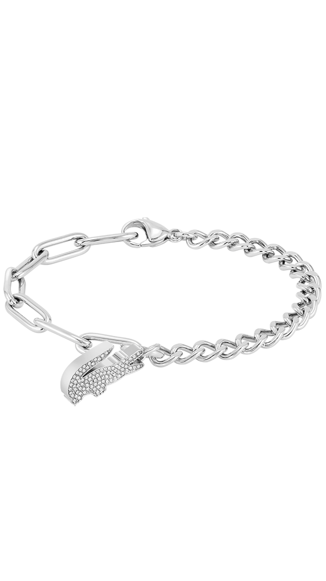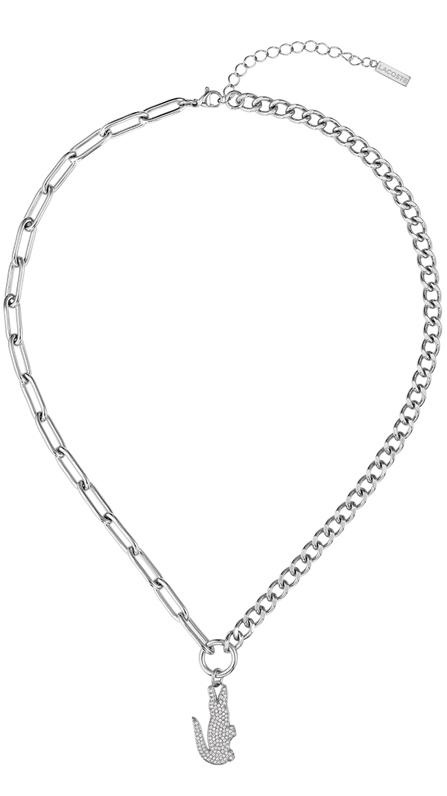 El emblemático cocodrilo define la colección Crocodile de Lacoste, construida en torno al ícono de la marca como elemento de múltiples piezas, incluyendo collares, pulseras y pendientes. La colección de género neutro ofrece posibilidades de superposición. El cocodrilo se presenta en dos acabados diferentes: un diseño pulido atemporal o con pavé de cristales brillantes para una estética moderna, con una combinación de estilos en los eslabones de la cadena.