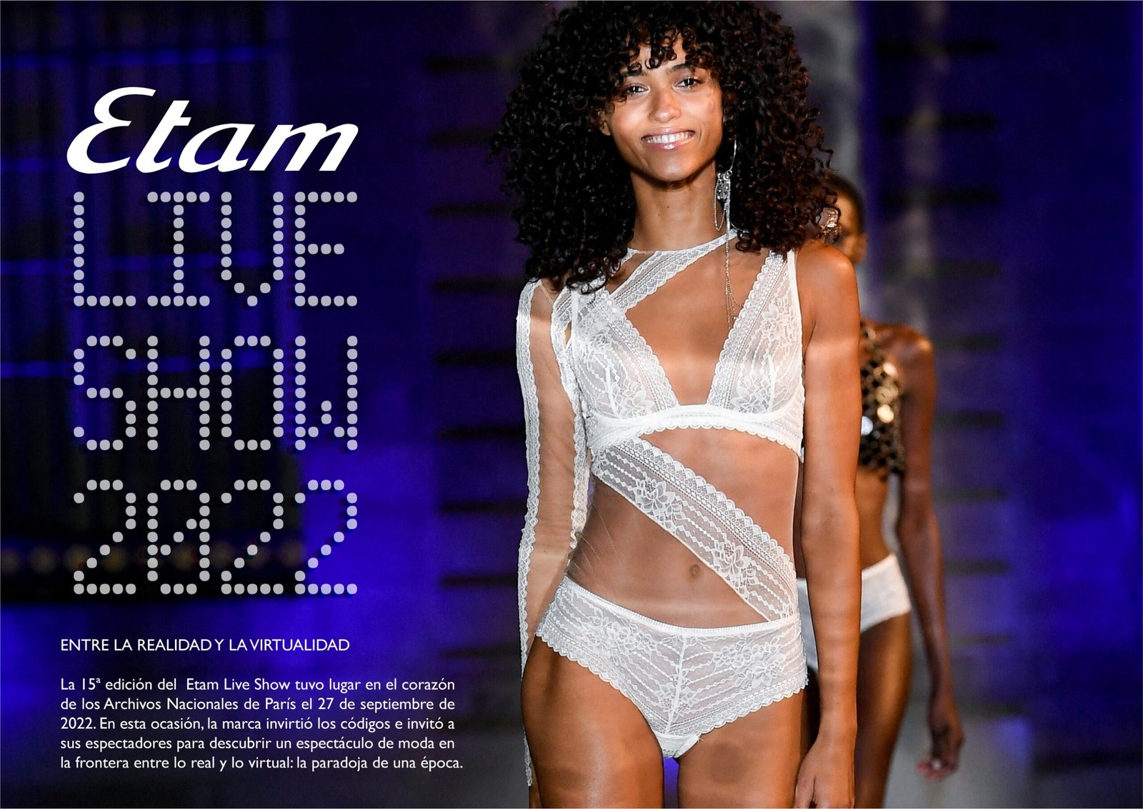 La 15ª edición del Etam Live Show tuvo lugar en el corazón de los Archivos Nacionales de París el 27 de septiembre de 2022. En esta ocasión, la marca invirtió los códigos e invitó a sus espectadores para descubrir un espectáculo de moda en la frontera entre lo real y lo virtual: la paradoja de una época