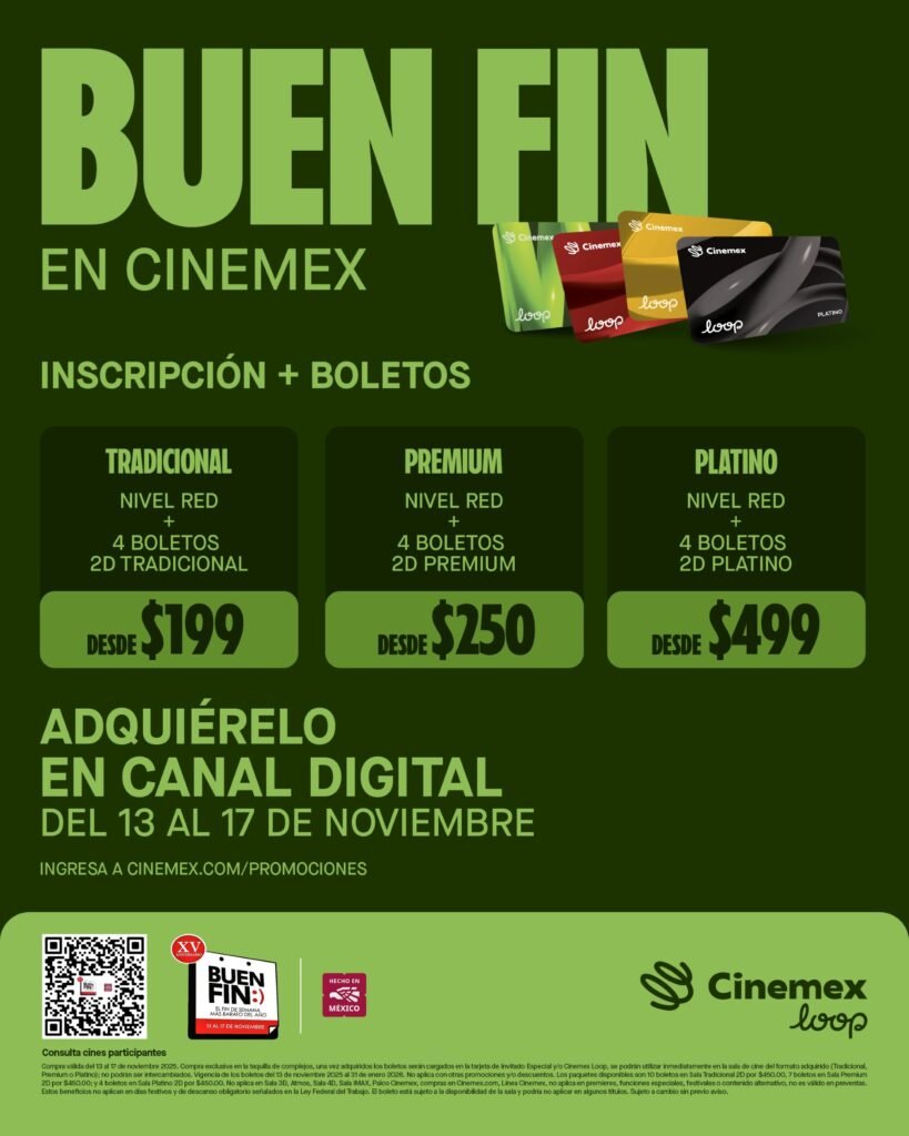 Durante el Buen Fin, del 13 al 17 de noviembre, Cinemex ofrecerá ofertas exclusivas para los verdaderos fans del cine que gozan de disfrutar de los mejores estrenos con grandes beneficios: