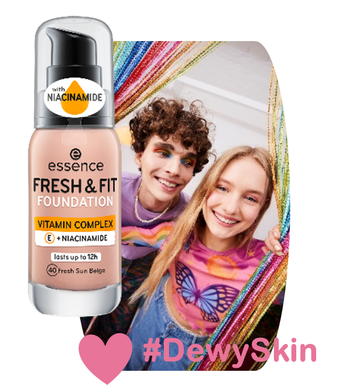 Tip: Aplica tu base de maquillaje ligera e iluminadora como FRESH & FIT FOUNDATION de essence, que además nutrirá a tu piel gracias a un complejo de vitaminas E, B5 y niacinamida.