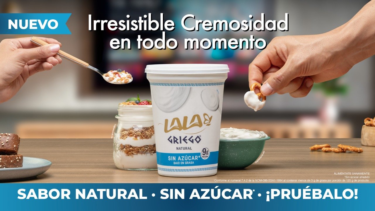 Grupo Lala, empresa mexicana enfocada en alimentos saludables y nutritivos, fortalece su presencia en el mercado de yoghurt griego, creciendo la familia con Lala Griego® Natural sin azúcar, producto versátil y dirigido a las personas que buscan el sabor natural del yoghurt griego, con todos sus aportes nutrimentales y con la ventaja de que esta nueva presentación no cuenta con azúcar añadida, además de ser reducido en grasas y contar con 9 g de proteína en su presentación de 125 g.