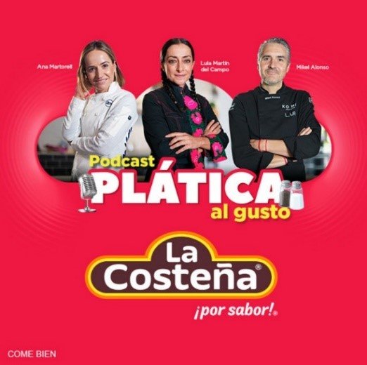 A partir de hoy, ya se encuentra disponible la cuarta temporada del podcast de La Costeña®, Plática al gusto, donde de la mano de los reconocidos chefs Lula Martín Del Campo, Ana Martorell y Mikel Alonso, podrás conocer los mejores datos de la cocina mexicana.