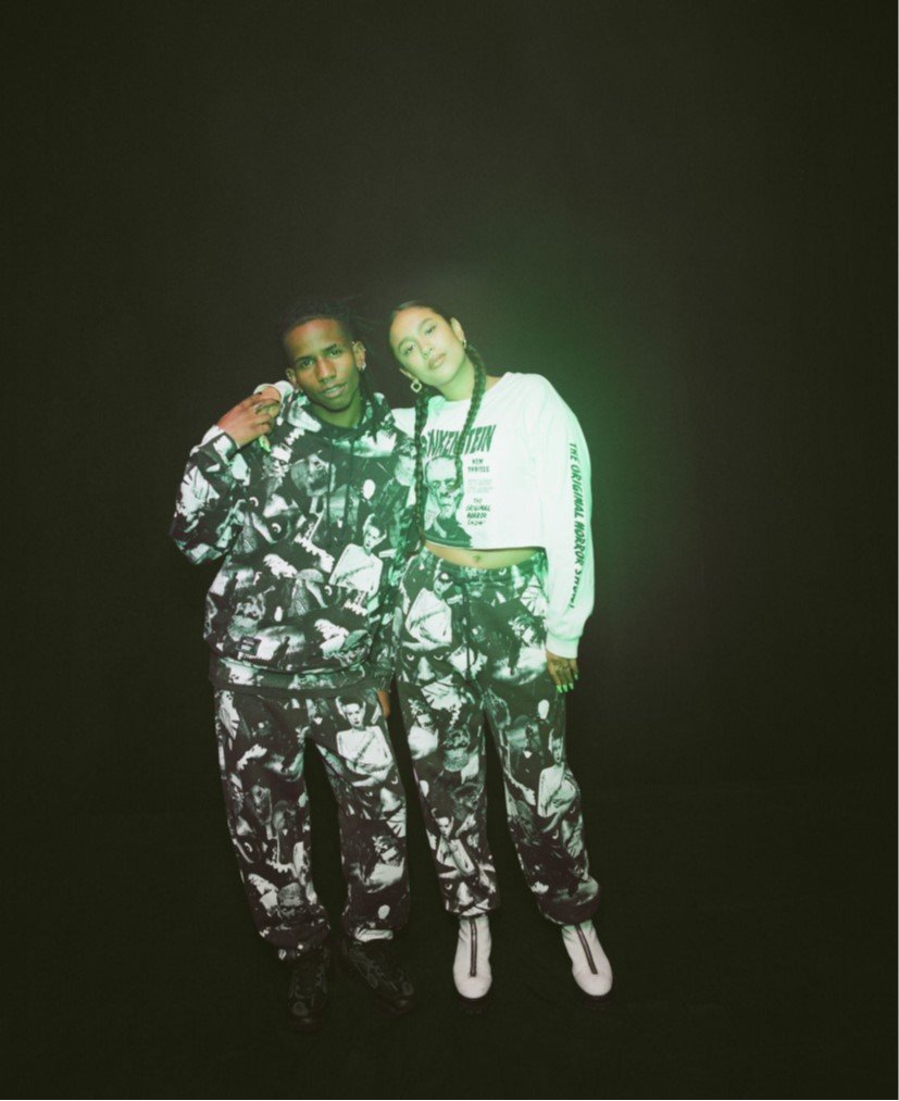 Cada pieza de la colección contiene una combinación de colores en blanco y negro, junto con algunos toques de amarillo y verde neón. Destacan las líneas limpias, los gráficos nítidos y los detalles sorpresa, como los estampados y detalles que brillan en la oscuridad y que cobran vida por la noche .Como un homenaje a la trifecta del cine, los elementos de marca incluyen un parche trasero de edición