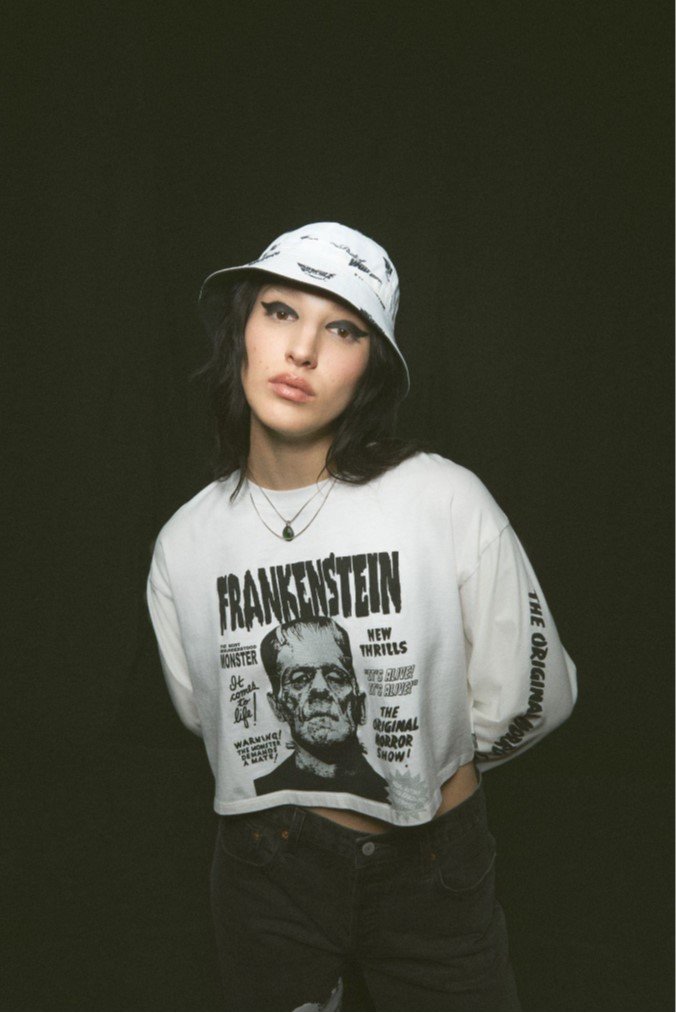 Los artículos esenciales de la colección incluyen una Levi’s® Trucker de color negro con un gráfico en la espalda del monstruo de Frankenstein, un Chore Coat blanco con imágenes de las tres películas, una sudadera negra con un gráfico del póster original de La novia de Frankenstein y una sudadera con capucha con un estampado de todos los monstruos de Universal. También hay un pantalón Stay Loose