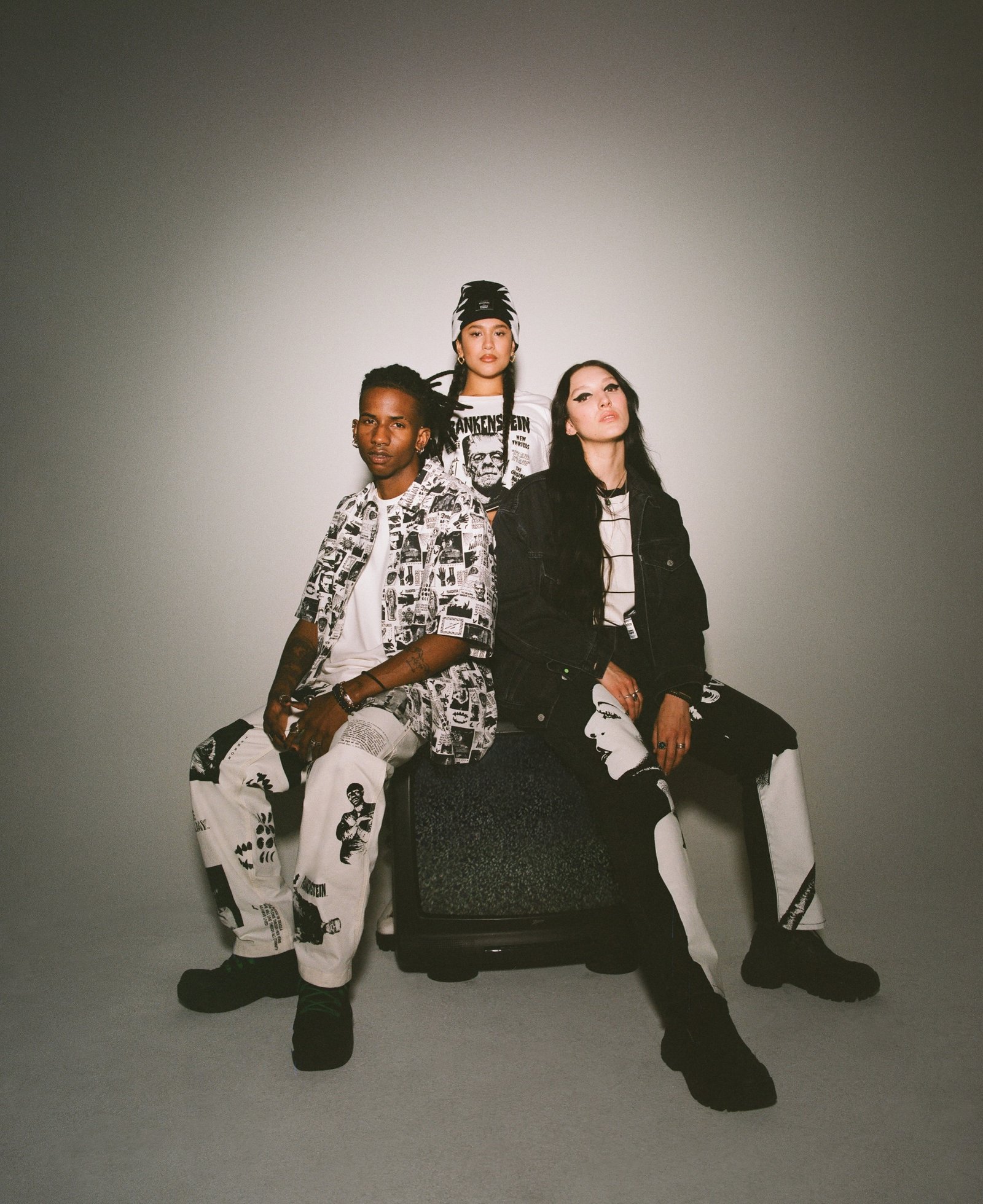 Los artículos esenciales de la colección incluyen una Levi’s® Trucker de color negro con un gráfico en la espalda del monstruo de Frankenstein, un Chore Coat blanco con imágenes de las tres películas, una sudadera negra con un gráfico del póster original de La novia de Frankenstein y una sudadera con capucha con un estampado de todos los monstruos de Universal. También hay un pantalón Stay Loose