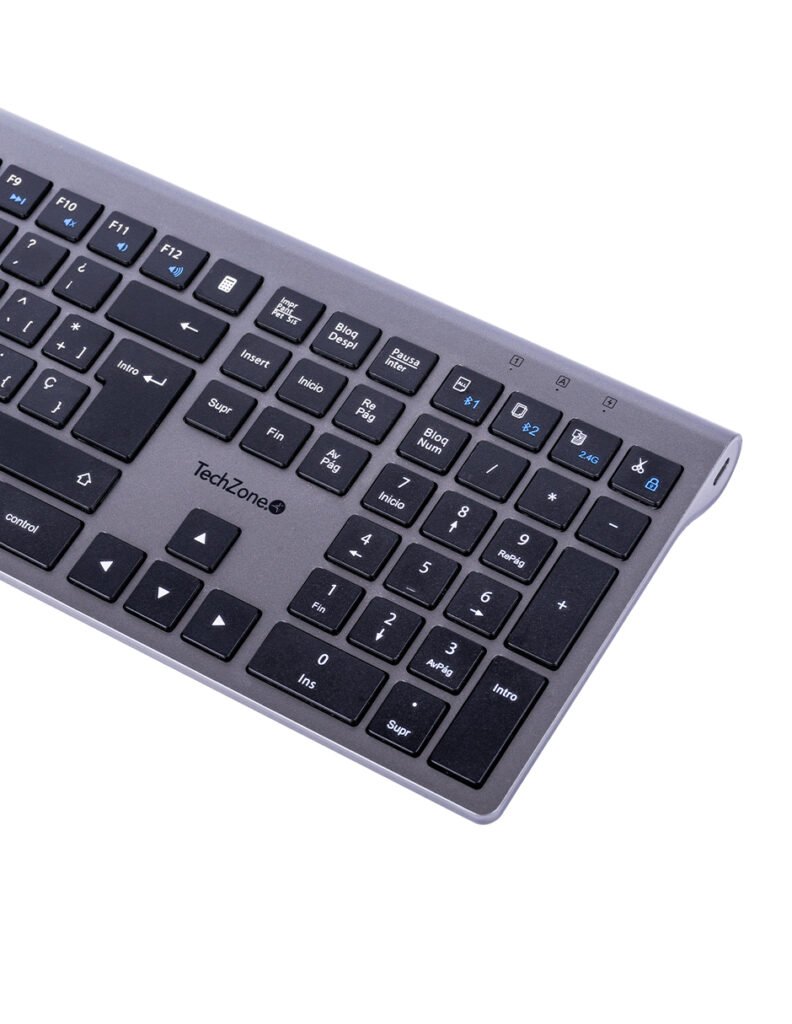 Teclado recargable con conexión Bluetooth compatible con Windows, Android y MacOS y un alcance de 10 metros.