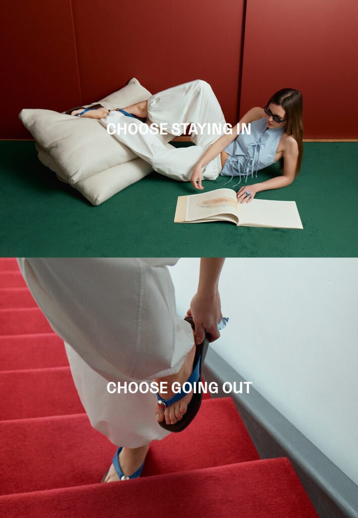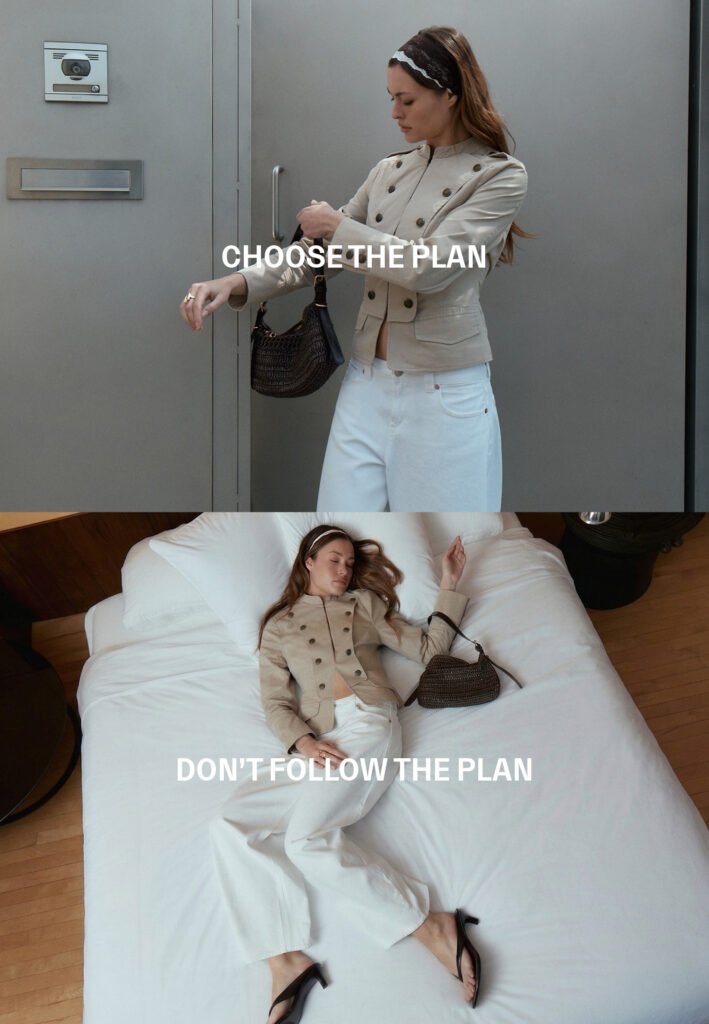 Esta idea se traduce en la editorial a través de escenas cotidianas que exploran la elección y su opuesto. Momentos simples dan paso a decisiones enfrentadas, seguir el plan o romperlo, quedarse o salir, en una estética que combina lo pulido con lo espontáneo y refleja la dualidad constante de la vida real.