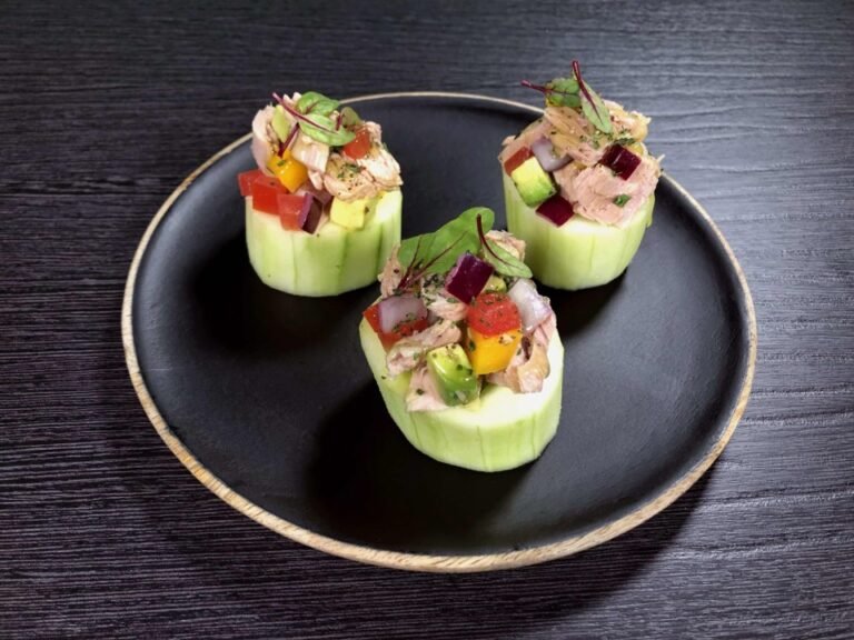 · 1 lata de Lomo Sólido de Atún en Aceite vegetal · ½ taza de mango, en cubos · 1 jitomate, en cubos · 1/3 de taza de cebolla morada, finamente picada · 1 aguacate, en cubos · 2 cdas. de cilantro, finamente picado · 4 cdas. de jugo de limón · 1 cda. de salsa picante · 1 ctda. de sal de grano · ½ ctda. de pimienta negra, recién molida · 2 pepinos, pelados · Brotes de betabel ¿Cómo la preparas? · Mezcla en un recipiente el Lomo Sólido de Atún Dolores® en Aceite, mango, jitomate, cebolla, aguacate, cilantro, jugo de limón, salsa picante, sal y pimienta al gusto.