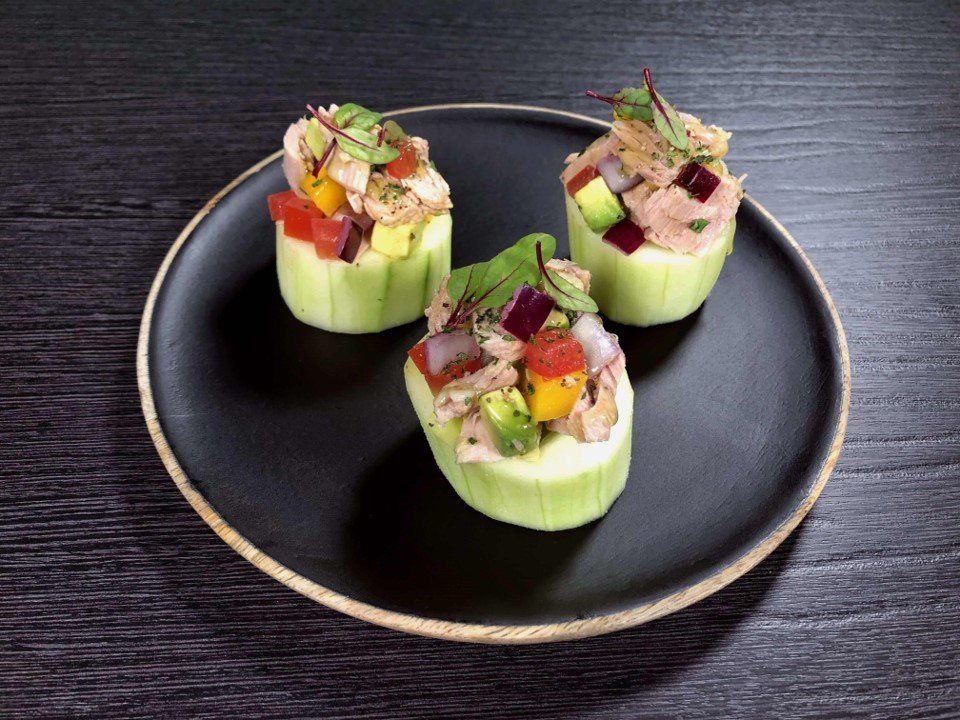 En menos de 20 minutos puedes preparar unos deliciosos bocadillos de pepino, que, por su contenido de atún son una fuente rica en minerales como el fósforo, yodo y magnesio, los cuales te ayudarán a tener un buen funcionamiento de los músculos y el sistema nervioso, además de mantenerte hidratado. Acompaña esta deliciosa preparación, con una bebida refrescante para obtener el complemento perfecto.