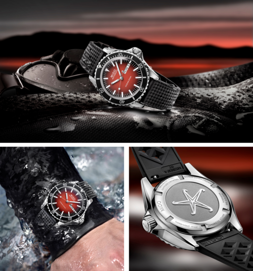 Presentamos un flashback emocionante y de colores brillantes a los primeros días del buceo deportivo. Con una llamativa carátula roja degradada y una correa con un aspecto retro único, el nuevo Ocean Star Tribute Gradient se suma a la colección que celebra la experiencia de Mido en resistencia al agua. Los placeres de las expediciones de buceo de antaño reviven en detalle, como su caja pulida con un diámetro de solo 40,5 mm y un cristal de zafiro estilo “glassbox”. La confiabilidad de este modelo vintage pero de alto rendimiento se mejora con tecnología de punta, que incluye Super-LumiNova® para facilitar la lectura y un anillo de aluminio negro en el bisel giratorio. El Calibre 80, con una autonomía de hasta 80 horas de reserva de marcha y una resistencia al agua hasta una presión de 20 bar (200 m / 660 ft), dan aún más razones para sumergirse en el agua en cada oportunidad.