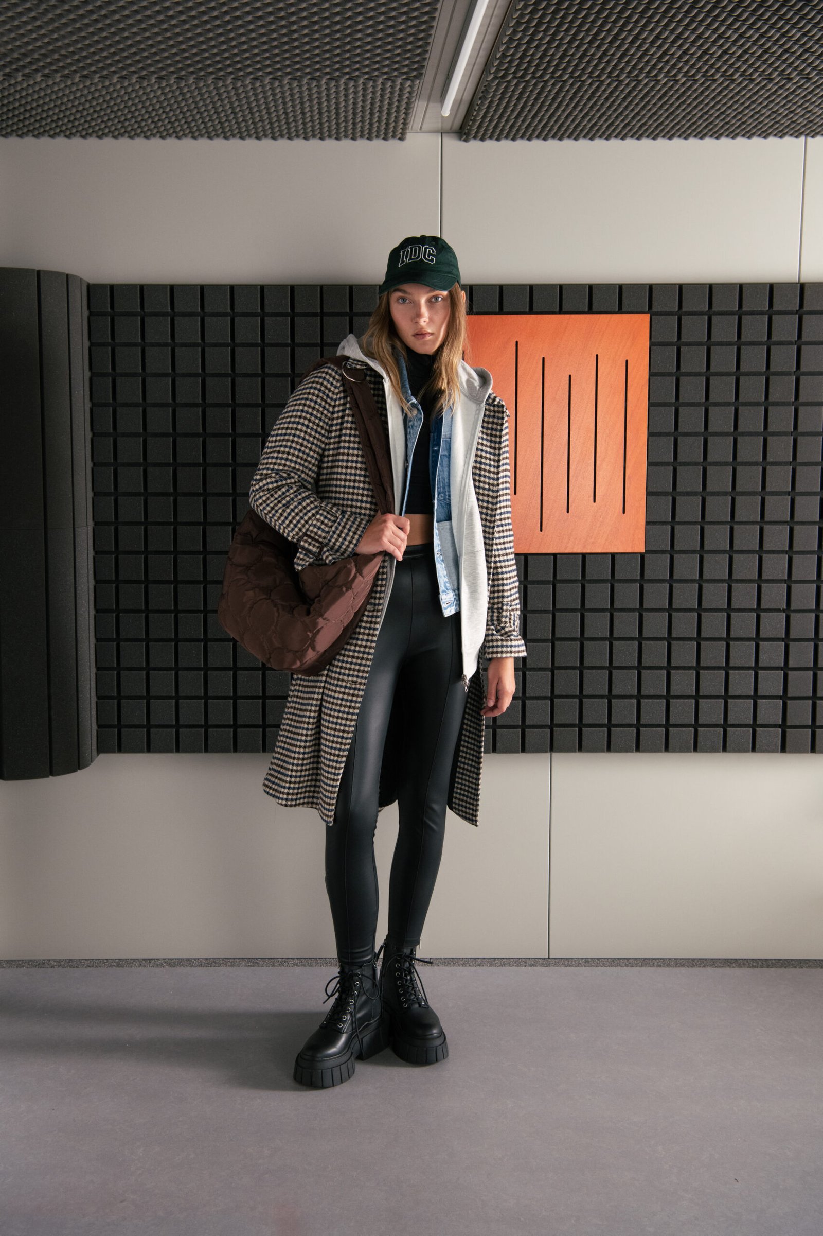 Los accesorios también están muy presentes y toman forma a partir de gorras de estilo universitario, un cu_ beanie en naranja y un bucket hat de pana en blanco roto.