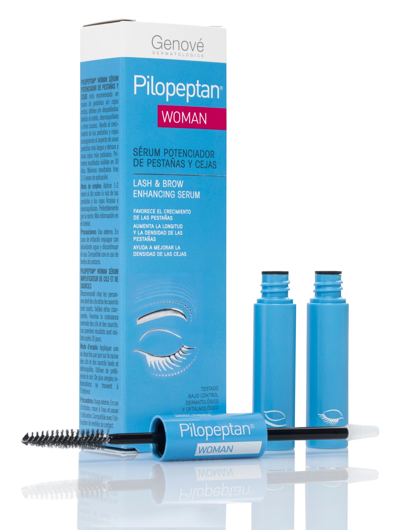 Pilopeptan Woman Sérum Potenciador de pestañas y cejas está formulado con bioactivos innovadores que modulan la actividad de los factores de crecimiento. Estimula la síntesis te queratina aportando mayor densidad.