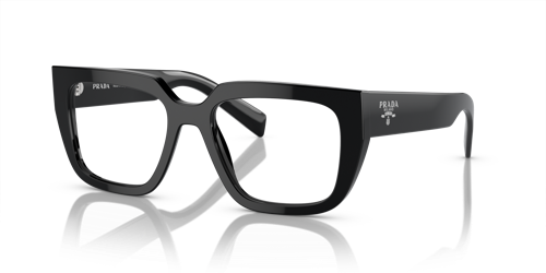 La nueva colección de gafas oftalmicas Otoño-Invierno 2023 combina un estilo clásico con un atractivo moderno. El frente se caracteriza por un diseño geométrico con volúmenes atrevidos, mientras que las varillas están personalizadas con el icónico logotipo de Prada. Este armazón de acetato reciclado de origen renovable está disponible en tonos negro, havana y negro cristalino.