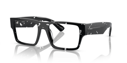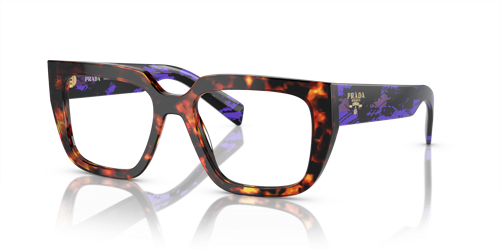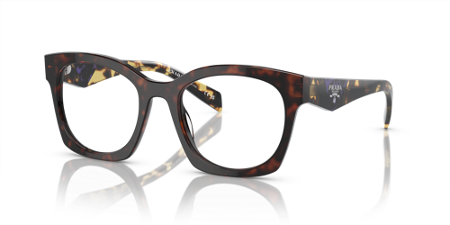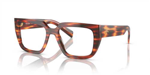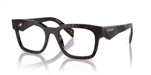 El diseño de las gafas oftalmicas de la nueva colección Otoño-Invierno 2023 presenta un armazón rectangular clásico de acetato reinterpretado con un toque moderno. Las atrevidas varillas llevan una exclusiva placa metálica con el logotipo de letras de Prada finamente grabado sobre ella. Este armazón de acetato reciclado de origen renovable se caracteriza por una paleta de colores en tonos negro, negro mate, brezo a rayas, havana negro cristalino y havana brezo.
