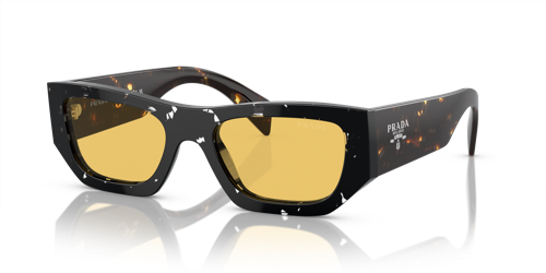Nuevas gafas de sol de acetato de la colección Otoño-Invierno 2023 de Prada hombre. La clásica elegancia del frente rectangular se combina con los atrevidos volúmenes de las varillas para transmitir un estilo contemporáneo. El logotipo con letras de Prada está finamente grabado en una exclusiva placa metálica, un elemento icónico de las colecciones de gafas de Prada. Este armazón de acetato reciclado de origen renovable está disponible en tonos negro, havana brezo, brezo a rayas, havana negro malta y havana negro cristalino, combinado con sofisticadas lentes de cristal o su versión polarizada.