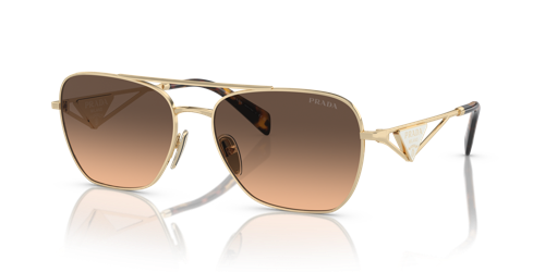 Estas nuevas gafas de sol metálicas de la colección Otoño-Invierno 2023 destacan la elegancia contemporánea. El amplio frente en forma de gota presenta perfiles suaves que se combinan con varillas personalizadas con el icónico logotipo triangular de Prada. La paleta de colores incluye tonos negro, dorado, dorado rosa y dorado pálido con lentes de color oscuro o degradado.