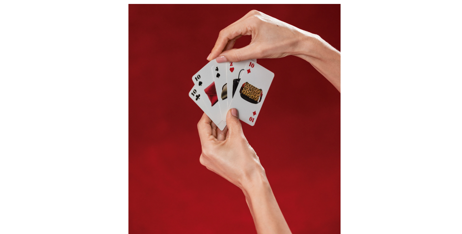 Inspirada en el universo de las cartas, cada pieza es un símbolo: el As que desafía lo predecible, la Reina de corazones que conquista con sutileza y fuerza. En Prada, la moda se juega con estrategia y emoción; es un tablero donde la autenticidad siempre gana la partida.