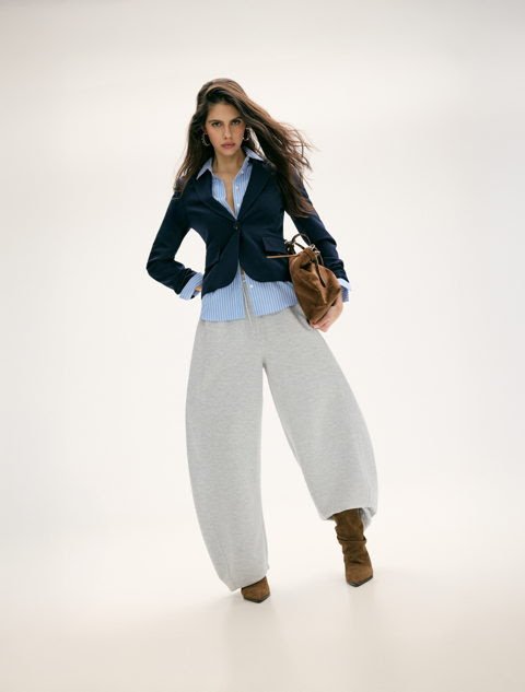 El nuevo drop se compone por chaquetas estructuradas que aportan fuerza en la parte superior, maxi cinturones que esculpen la cintura y pañuelos anudados que redefinen proporciones. Además, pone el foco en los pantalones balloon y joggers con bajos ajustables que crean efecto globo, sin olvidar las superposiciones que multiplican el impacto visual.
