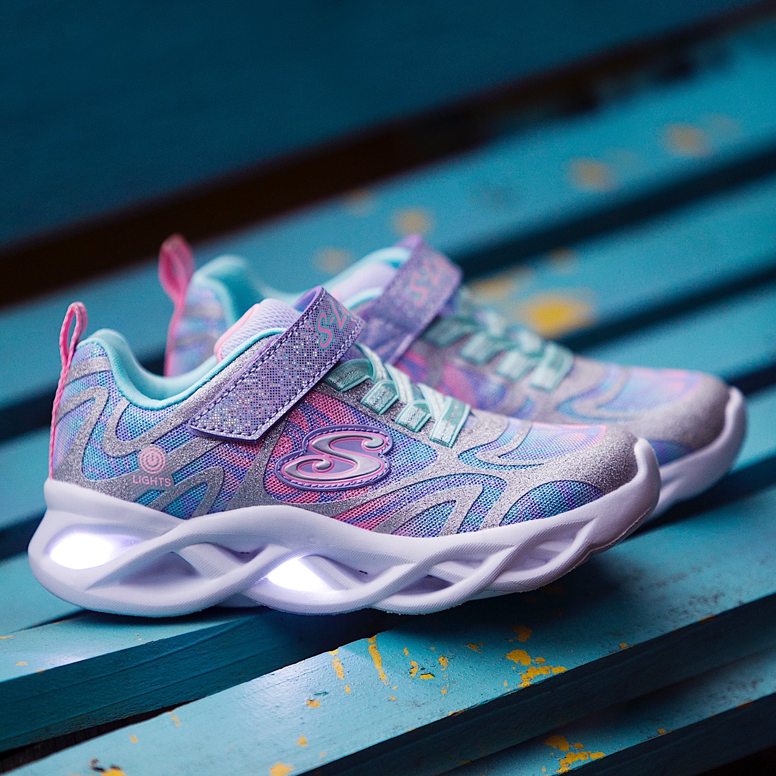 La colección de Skechers kids, cuenta con diferentes modelos increíbles para tus hijos como los Skechers Lights, que tienen una malla atlética y una parte superior sintética con un diseño multicolor que se ilumina, dejando huella a donde sea que vayan; los Twinkle Toes iluminarán los pasos de tus peques, gracias a las luces integradas que hacen de este par uno de los más divertidos; los Skechers Sport, son perfectos para los niños que aman hacer ejercicio, los cuales cuentan con el ajuste necesario y una plantilla Air Cooled Memory Foam que regresa a su forma original sin deformarse y una suela de goma duradera.
