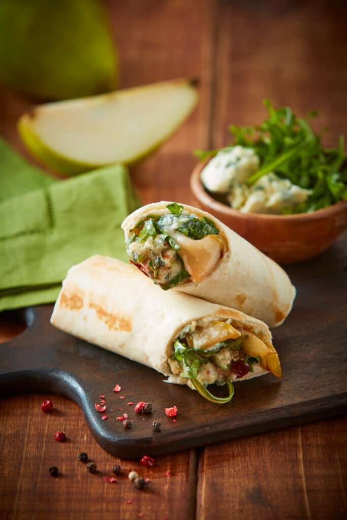 Wraps de pera, gorgonzola y arúgula