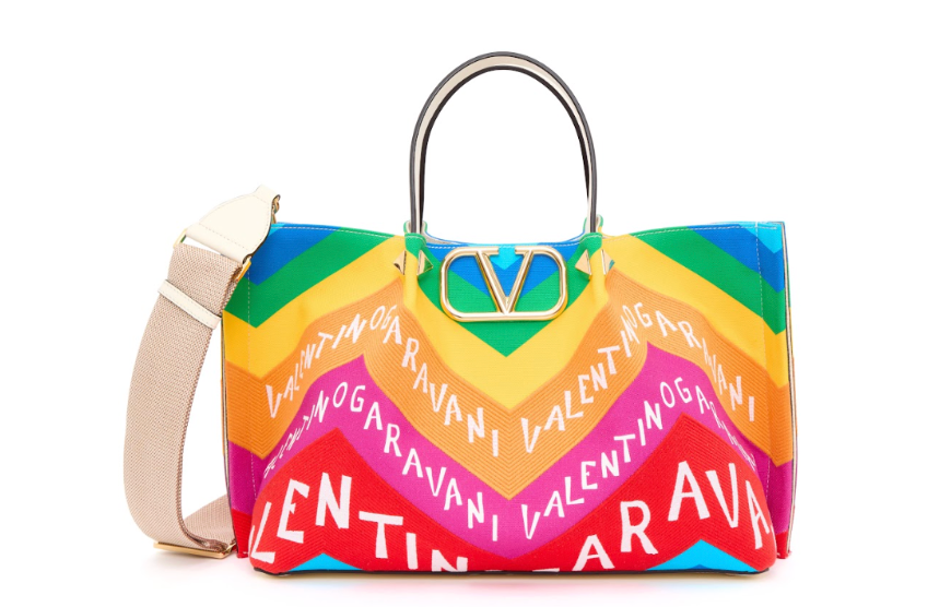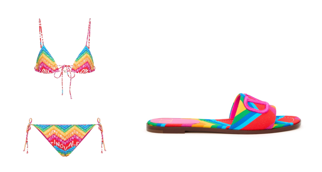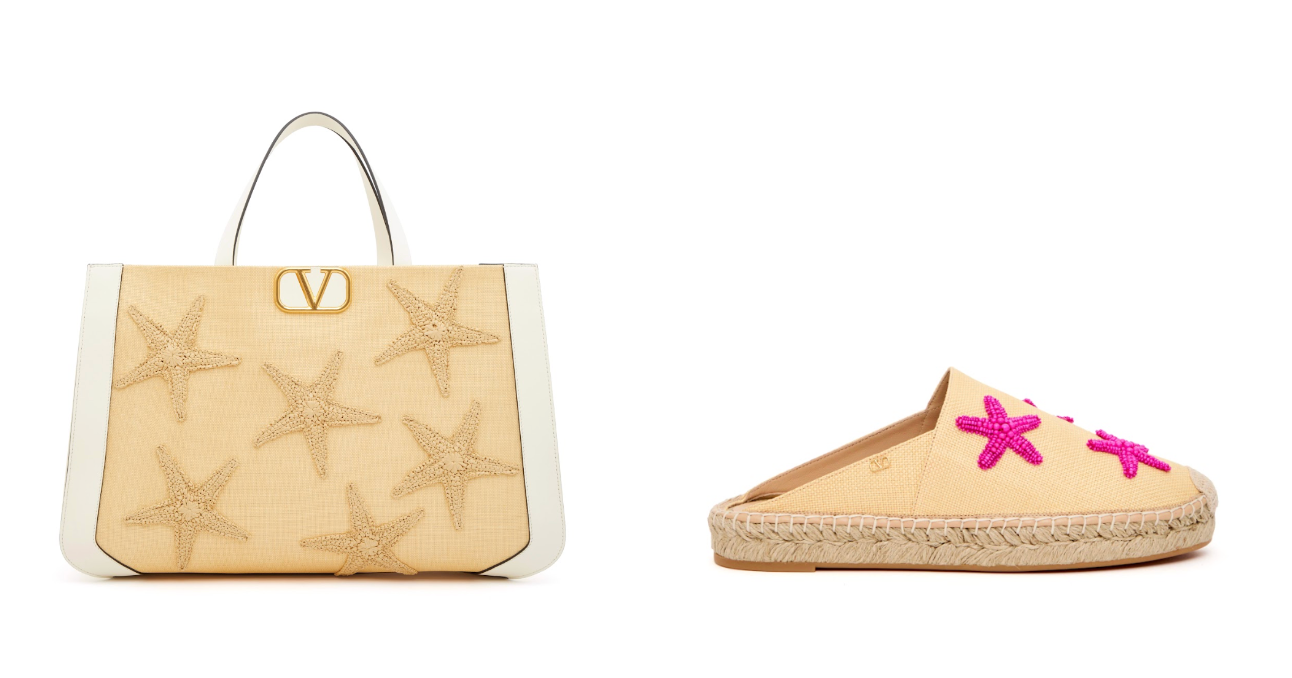 Los icónicos estampados también enriquecen los accesorios de Valentino Garavani: el motivo Starfish anima totes tono sobre tono y se repuja a mano en brillantes tonos rosas en alpargatas, el Chevron multicolor adorna bolsos bucket y eclécticos slides. La oferta continúa en innumerables iteraciones, desde diademas estampadas hasta sombreros, mini bolsos y mucho más.